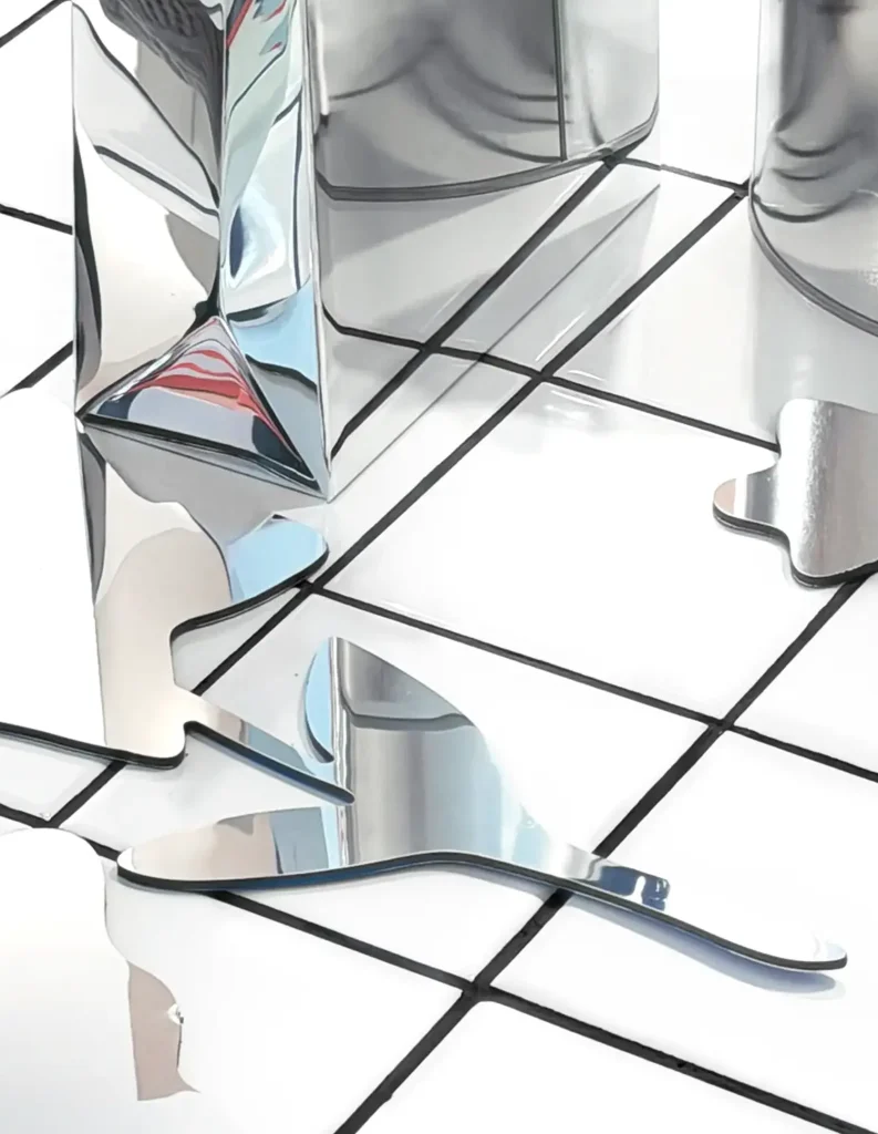 In the 2020s she came back to art in its purest form. Her interdisciplinary approach led her to experiment with a variety of media. Some of her signature works are objects representing ordinary, scaled-down household items made of mirror. In her painting, as well as her easel sculpture, the artist is interested in the dialogue she herself conducts with reality — a reality that one can accept and sustain only with a subtle sense of humour and a naïve childlike view of the world and its eternal, insuperable dramas. It is also a kind of game: a play of lights and shadows dancing between them, of rhythmically flashing rays of light; a play of reflections, when the creator is, now, in the role of the reflected and, at another time, in that of the reflecting.